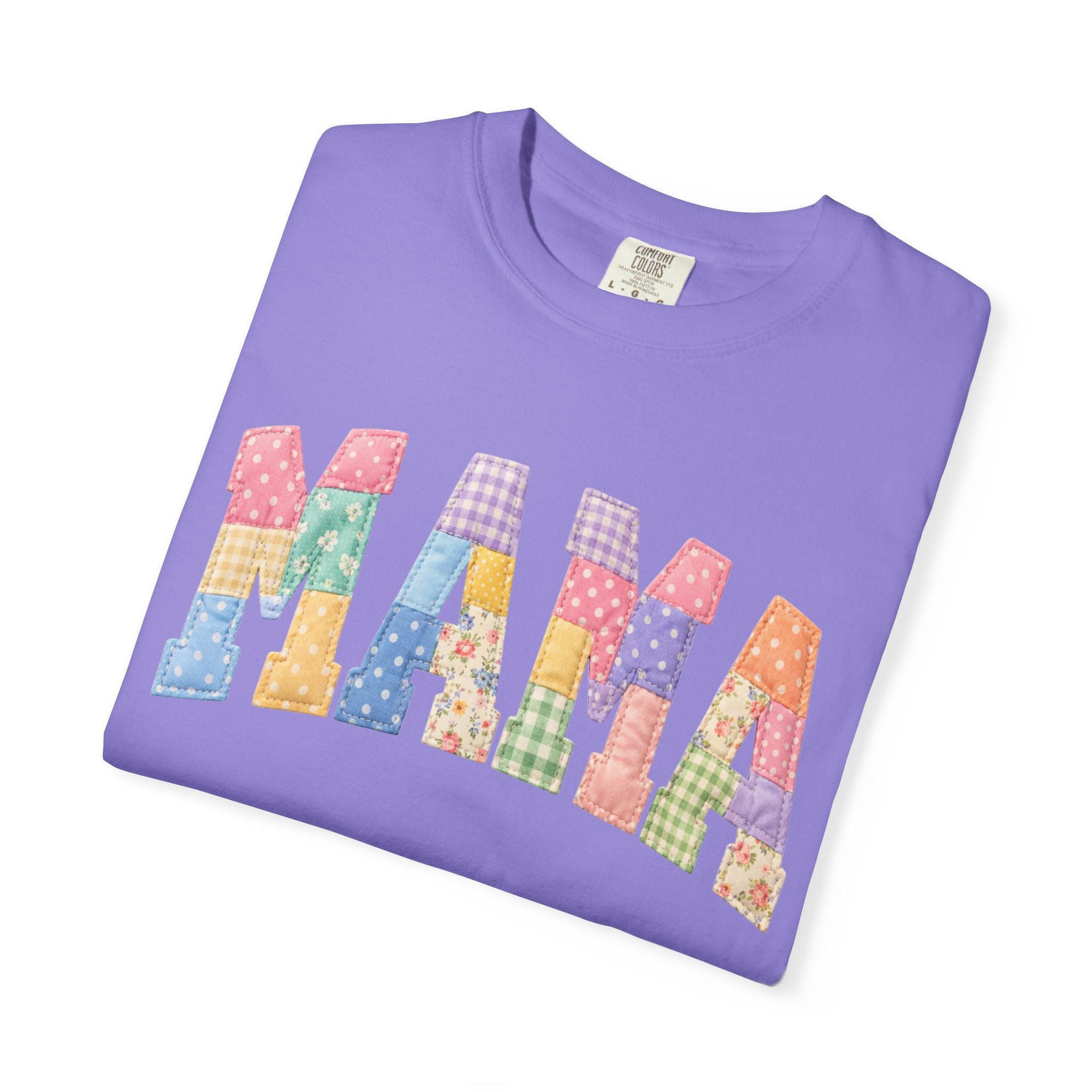 Mama Patchwork T-Shirt — Colorful Quilted Letter Graphic Tee